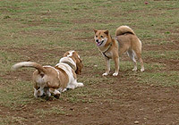 てなわけでドッグランでは、なるべくいかにも遊んでくれそーな、同じくらいの大きさの犬の近くでコマを放さなくてはいけないのだ。